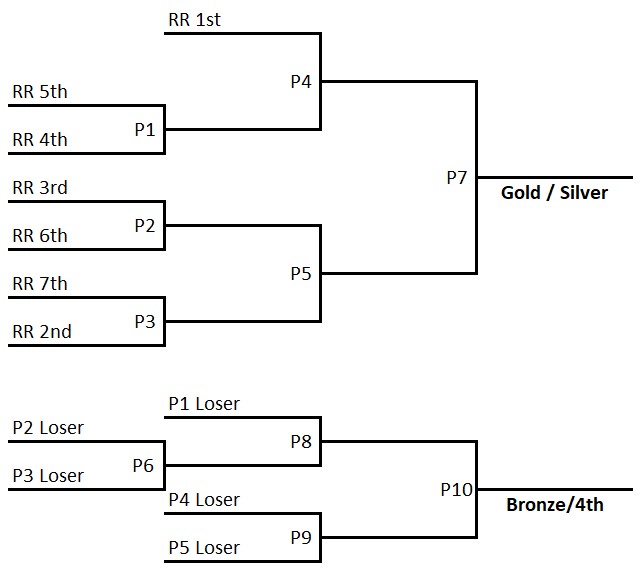 | Sunday Dec 7 4pm (P6) | Loser P2/P3 (lower seed) | Loser P2/P3 (higher seed) | ||